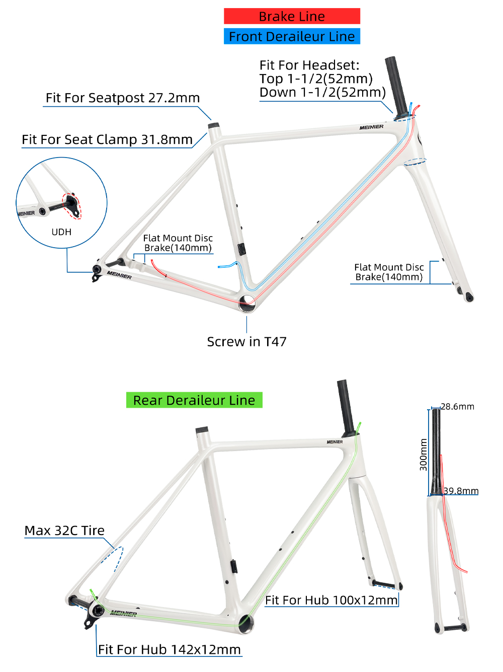 Fit for Headset:Top 1-1/2(52mm),Down 1-1/2(52mm)