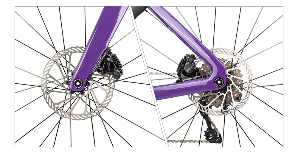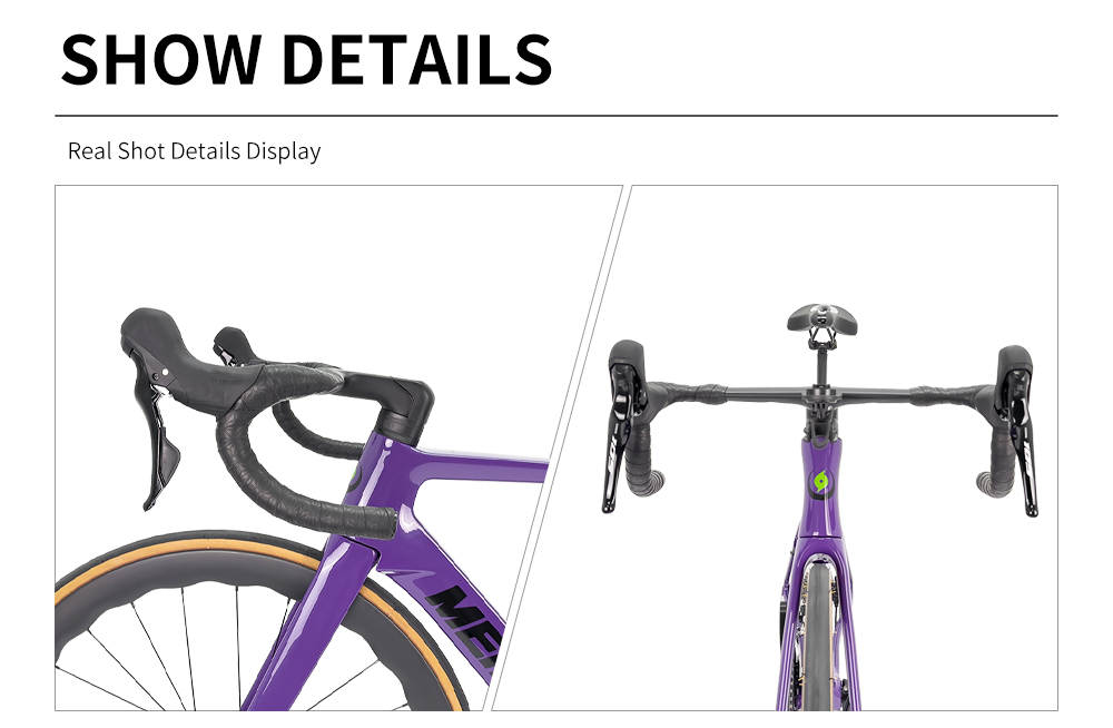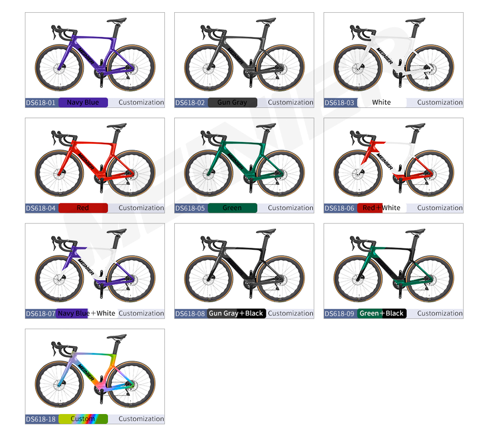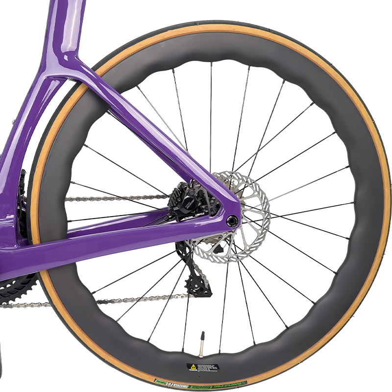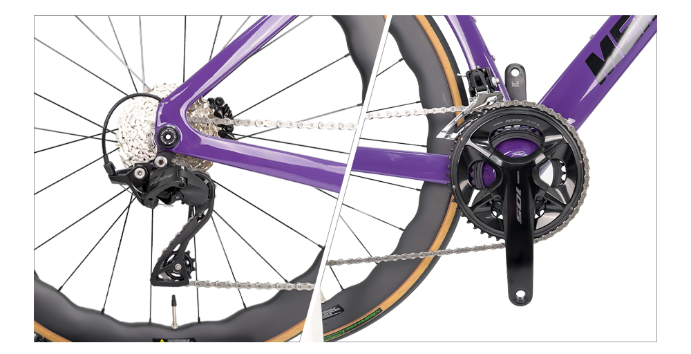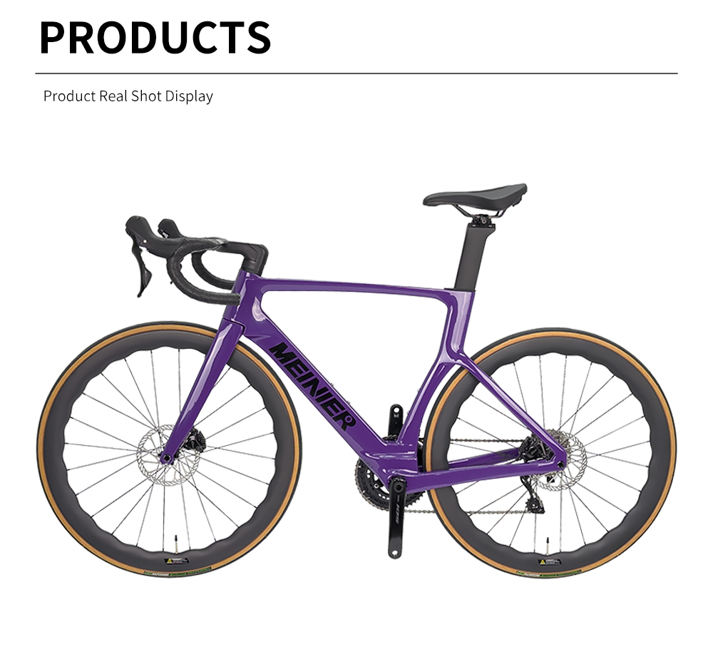 This high-performance carbon fiber road bike is crafted with precision engineering, featuring sleek geometry and a premium purple finish that combines timeless aesthetics with superior aerodynamics. Equipped with a Shimano 105 R7120 2x12-speed drivetrain, it offers reliable shifting and smooth power delivery. This disc-brake road bike is suitable for both competitive and recreational riders. You can also upgrade to a Shimano R7170, R8170, or R9270 electronic shifting system for an even better riding experience. As a professional carbon fiber manufacturer, we offer comprehensive customization services – you can replace the frame, wheels, and various components to meet your specific needs. Contact our team to discuss customized assembly options and component upgrades to create a unique riding style just for you.