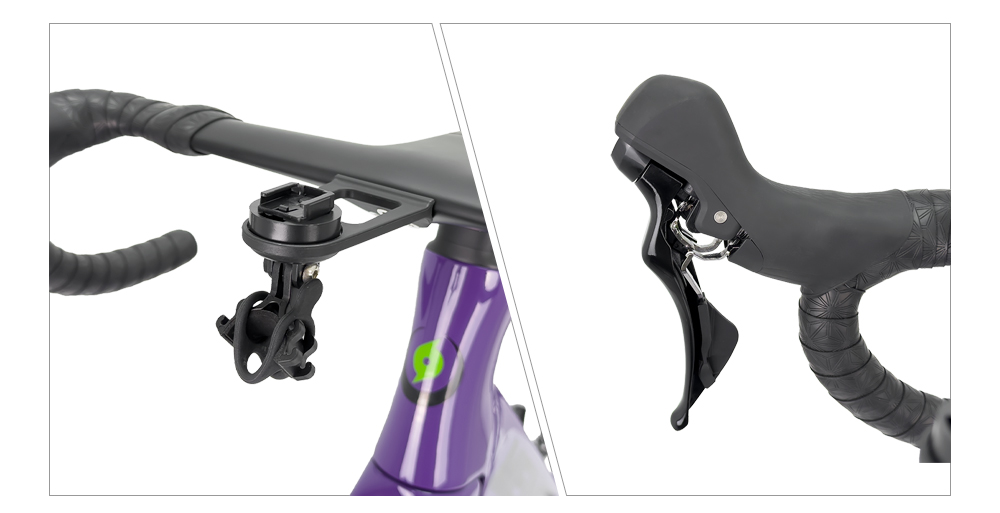 Drop handlebars position you lower and more aerodynamic, reducing frontal area and wind drag for higher speeds. Multiple hand positions enhance control during climbs and sprints while facilitating smooth braking and shifting. Combined with the frame's streamlined geometry, this setup delivers the aggressive posture competitive cyclists demand while maintaining comfort and responsiveness on extended efforts.