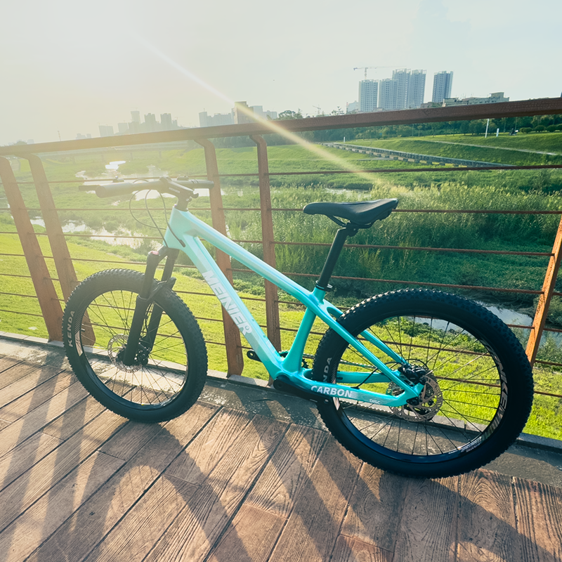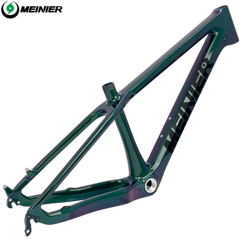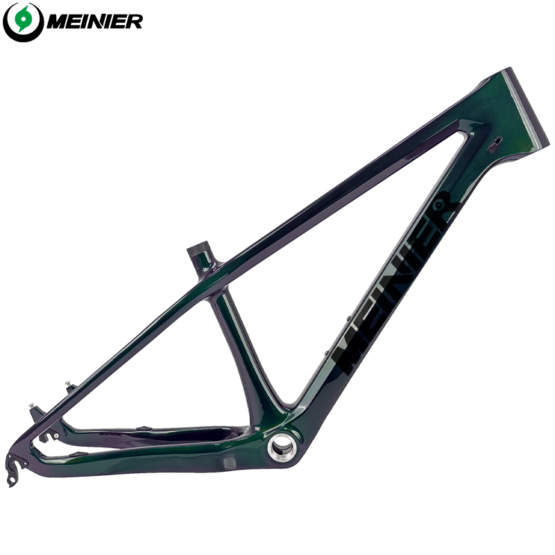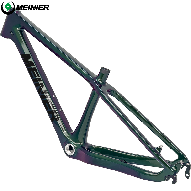 This 24-inch children's mountain bike frame is compatible with tires up to 2.35 inches and features a 142x12mm thru-axle rear wheel. Its lightweight design is specifically tailored for children. Constructed from premium T1000 carbon fiber, the frame provides young riders with the necessary stiffness and responsiveness. The carbon fiber construction minimizes frame weight, reducing fatigue during long rides and improving acceleration when climbing. This frame is designed for riders transitioning to technical terrain, balancing durability and lightweight performance to meet the demands of competitive off-road riding.