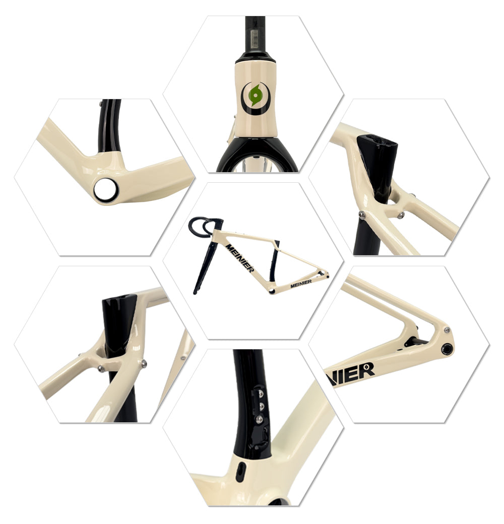This bike frame gravel are designed to sit somewhere between road and mountain bikes, allowing for narrower tires for road commuting or wider tires for conquering gravel, dirt, and even lightly technical trails. Carbon gravel frame typically feature more flexible geometry and optimized materials for improved vibration absorption, resulting in a more comfortable ride on long rides and rough terrain.