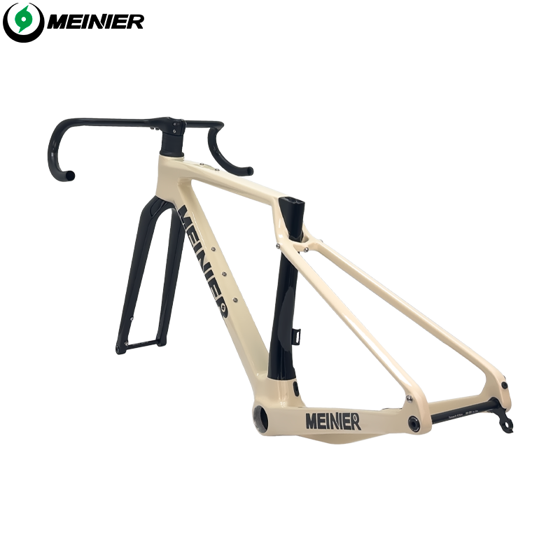 This model carbon gravel frameset, including carbon frame, carbon fork, and carbon handlebar, is a gravel carbon frame designed specifically for handling complex road conditions.