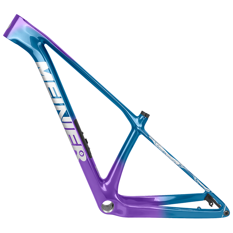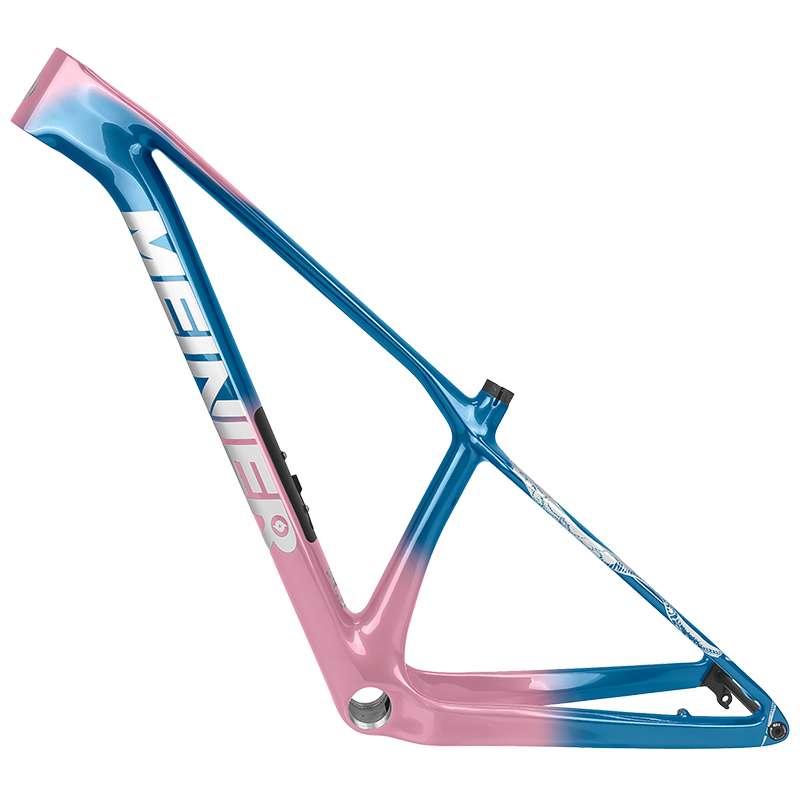 This model carbon hardtail frame Internal cable routing conceals the cable housing, giving the MTB frame a cleaner and tidier look and reducing the clutter of exposed cables. Protected within the frame, the cables are protected from external elements such as dirt, sand, and rocks, extending their lifespan. Cable routing also reduces aerodynamic drag, making the mountain bike smoother at high speeds and enhancing overall performance.