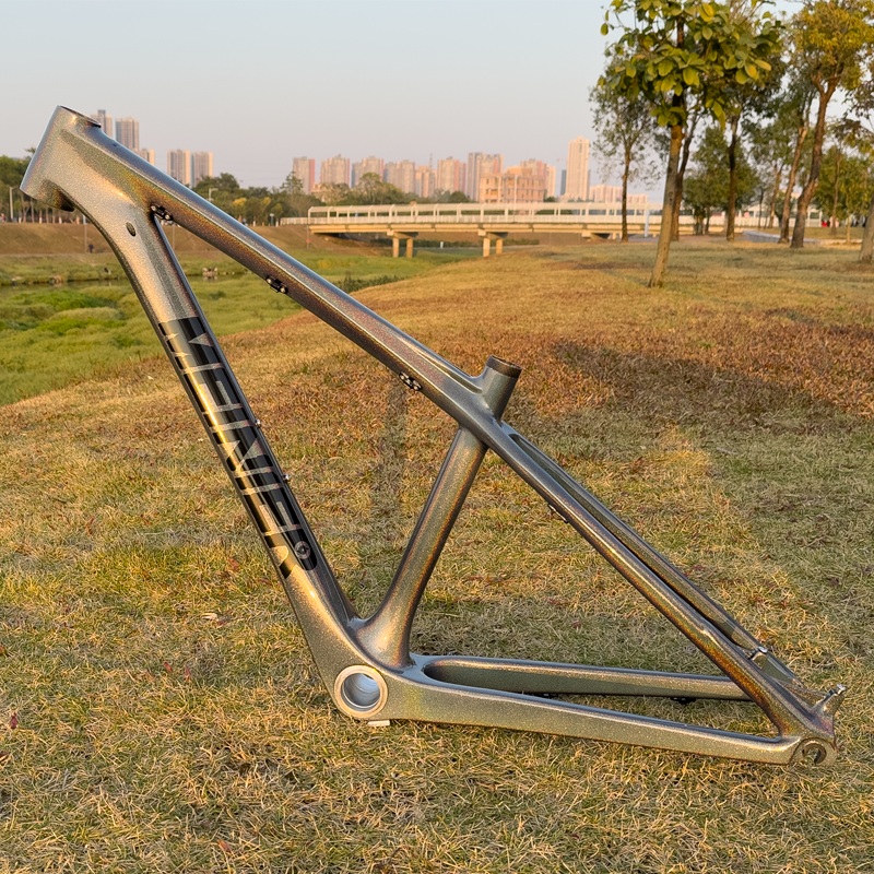 Elevate your young rider's trail experience with this stunning 26-inch children's MTB frame featuring customizable chameleon color technology. Watch the finish shimmer and shift through multiple hues as light dances across the surface—a feature that captures attention while delivering serious performance. Engineered from premium T1000 carbon fiber, this lightweight hardtail frame provides the strength young athletes need without the weight penalty. Give your child a frame that performs as impressively as it looks.