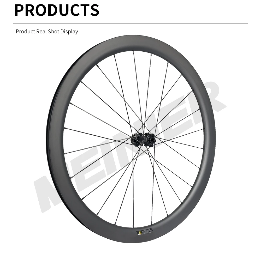 This road bike carbon wheelset features DT planetary gear hubs, providing reliable engagement and smooth power delivery for worry-free racing. Choose between center-lock or six-bolt discs for seamless compatibility with your existing braking system – no adapters, no compromises. Disc brake performance delivers powerful braking force and precise control in any weather condition, ensuring tactical control and safety during intense races. Its thermal management design ensures consistent braking performance on long descents, giving you confidence when speed control is critical. The aerodynamic 50mm rim profile effectively reduces drag, helping you maintain higher speeds and significantly saving time on flat tracks and time trials. Customize every detail to suit your racing philosophy. Five rim depths (35mm, 45mm, 50mm, 60mm, 88mm) are available to optimize your race schedule; choose clincher or tubeless compatibility based on your performance needs; and configure your preferred hub engagement and disc interface. Your carbon wheelset will become a precise tool, perfectly matching your competitive goals and riding style.