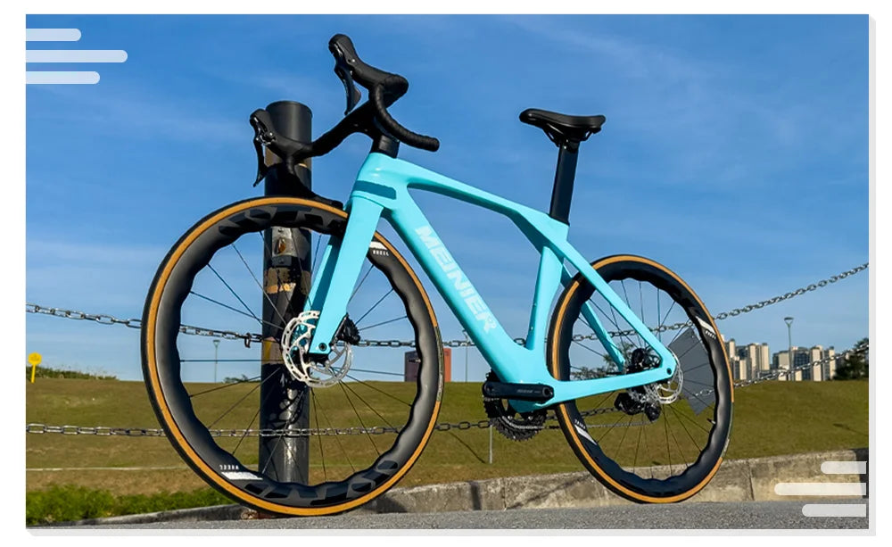 The MEINIER complete disc frameset integrates the frame, fork, and seatpost into a single unit, utilizing a flat tube design to maximize aerodynamic advantages. T1000 carbon fiber ensures lightweight performance, while the optimized tube shape significantly reduces wind resistance, allowing you to achieve greater speeds on every ride. Built with modern disc brake compatibility, this road frameset delivers superior braking control and modulation in all conditions.